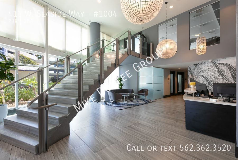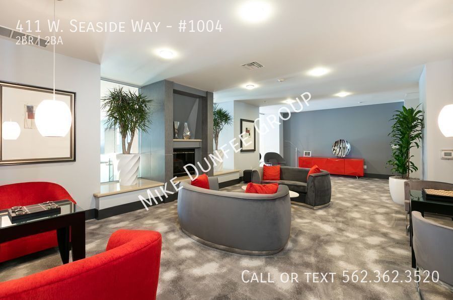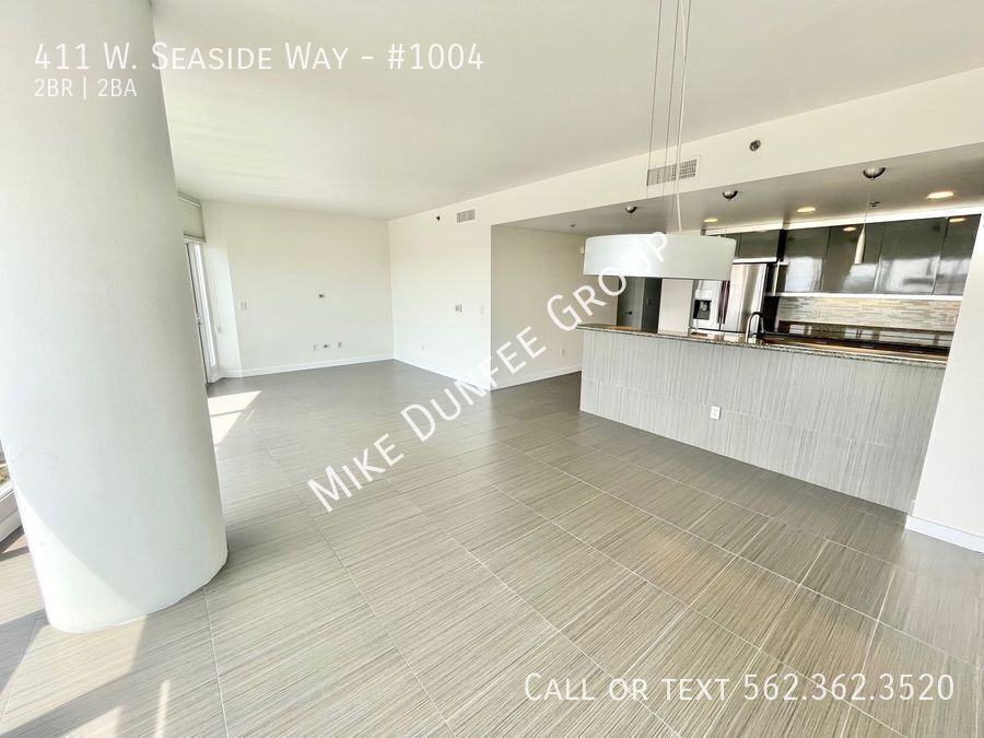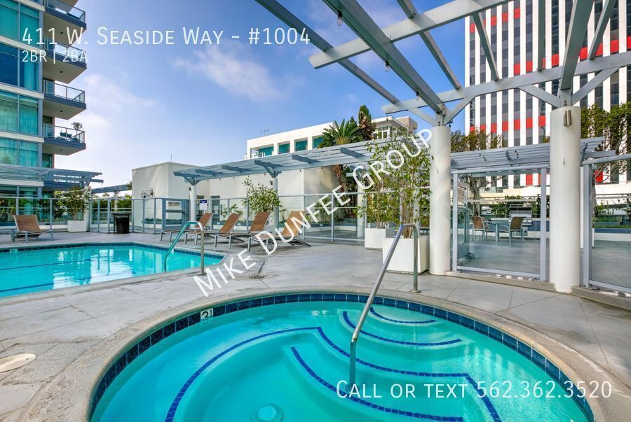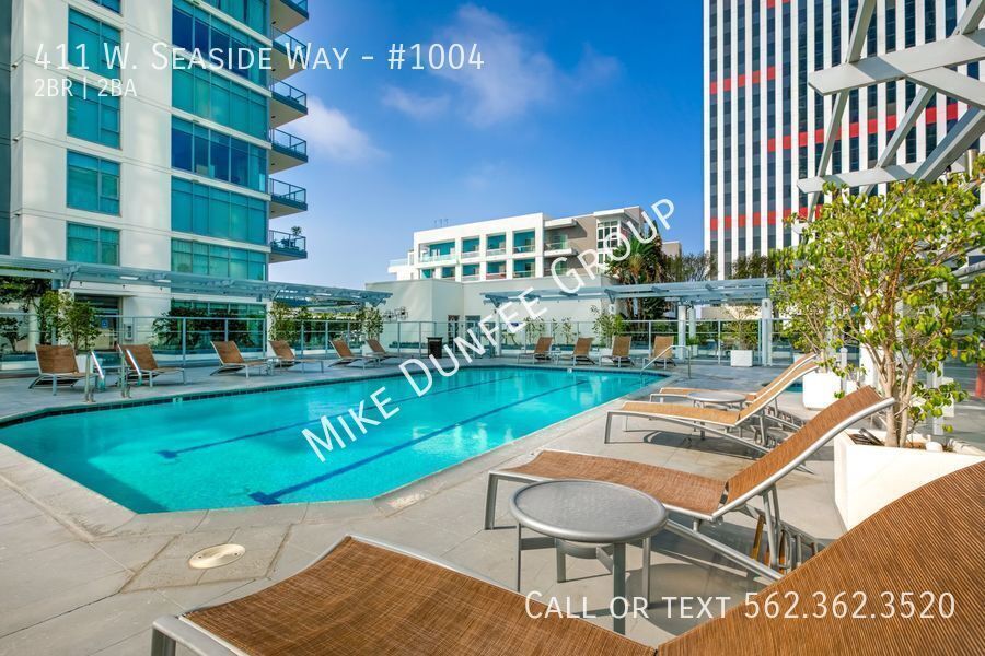 Discover modern waterfront living in this stunning corner 2-bedroom, 2-bath condo located in the prestigious 411 Seaside Way community. Offers floor-to-ceiling windows, great natural light, and beautiful views of the ocean and city. Features include an open floor plan, a private balcony off the living room with great outdoor space for entertaining, touch-up paint, luxury modern tile, carpet, and custom shades. The kitchen features granite countertops and stainless-steel appliances, including a refrigerator, gas stovetop-oven range, mounted microwave, dishwasher, stackable washer/dryer in-unit, and two assigned parking spaces. HOA dues include water, gas, sewer, and trash. The tenant pays for electric, cable, and internet services.