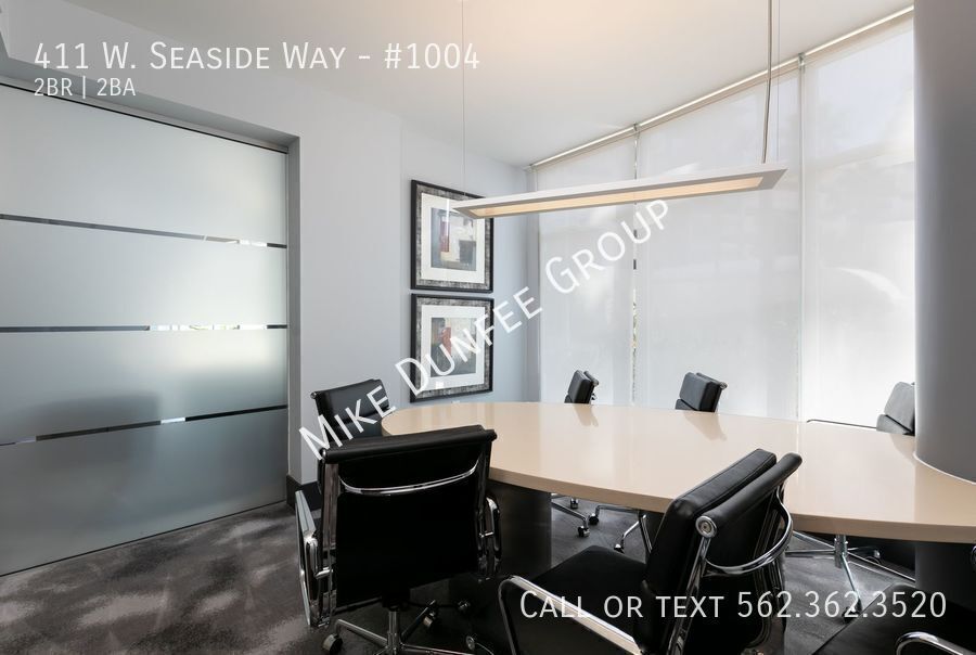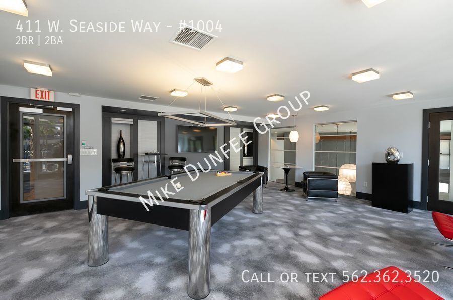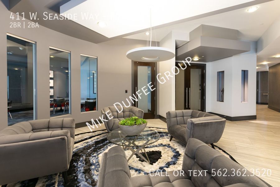 The 411 West Seaside Way community provides a 24-hour concierge, access to the amenities of both Tower 1 and Tower 2, includes a large pool, spa/sauna, outdoor shower, BBQ grills, 2 fitness centers/gyms, billiard & game room, business center, multiple club rooms, and lounge areas, rentable guest suite, bicycle room, and visitor parking.